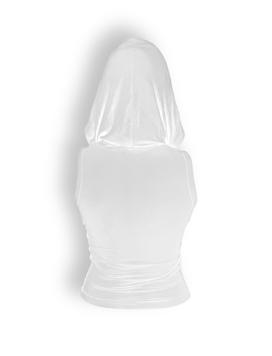 HOODED SLEEVE-LESS WHITE TOP