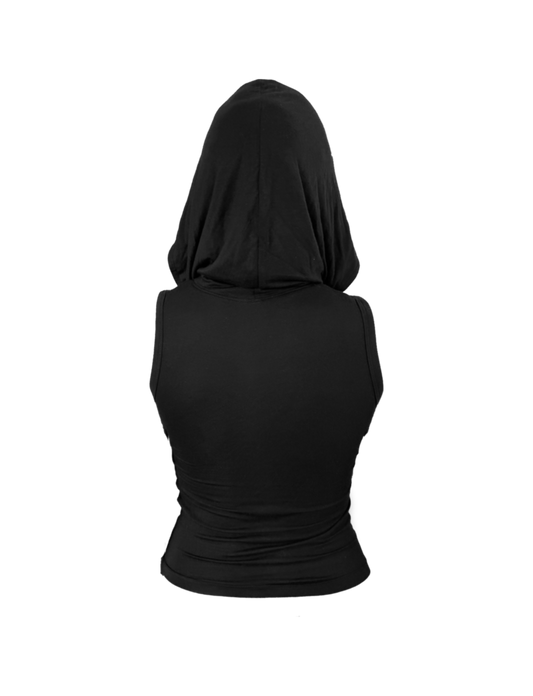 HOODED SLEEVE-LESS BLACK TOP