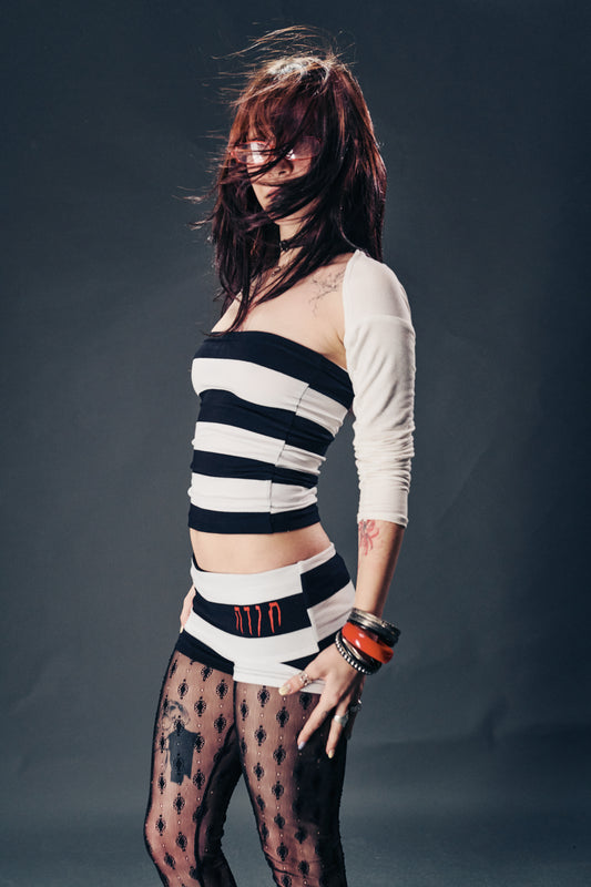 TODA BLACK & WHITE STRIPED SET - STRAPLESS & MICROSHORTS