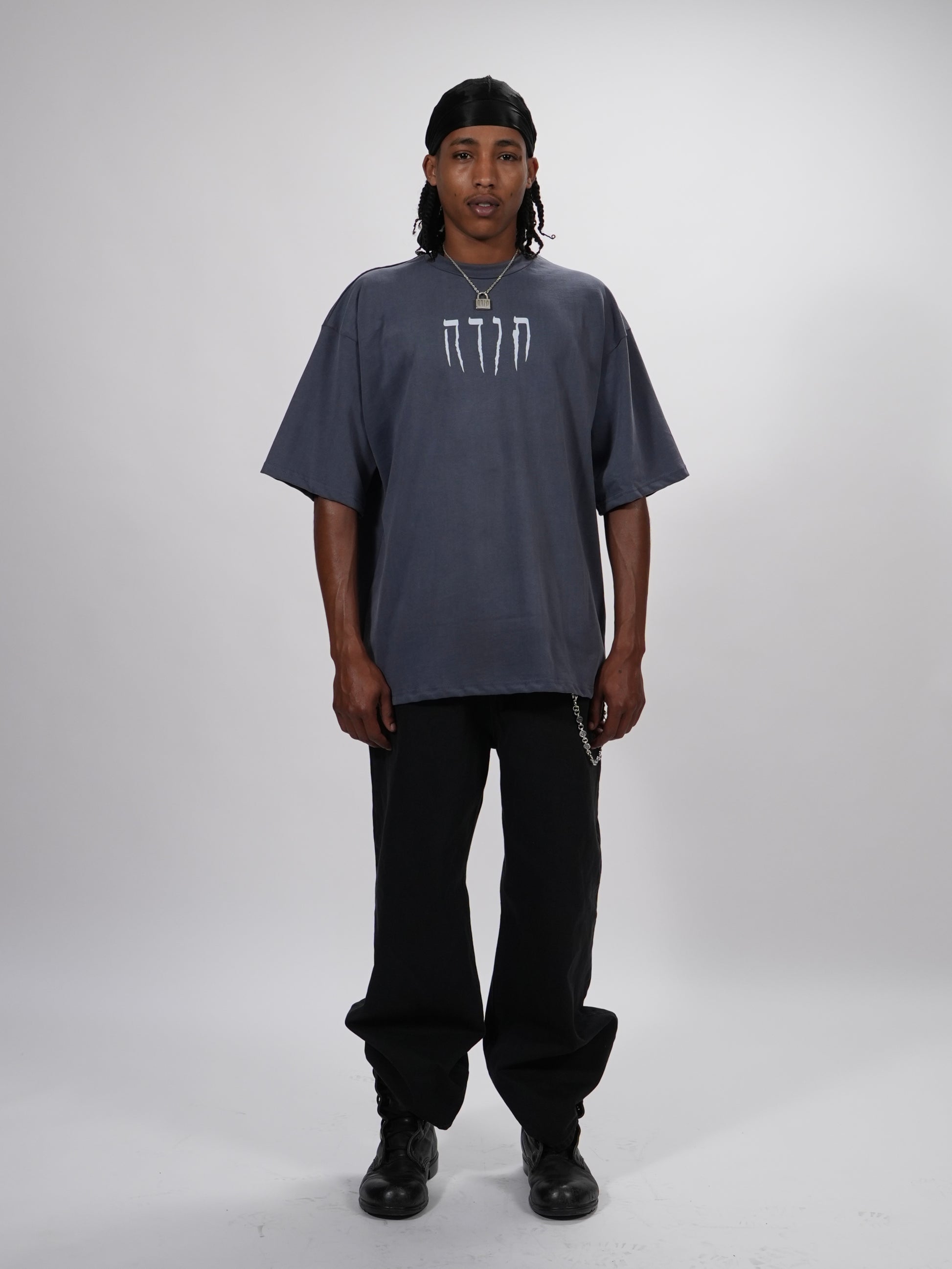 טי שרט אפורה צבועה אוברסייזד בגזרה רחבה ובוקסית